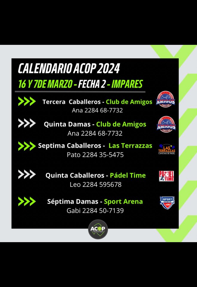 »» Evento: ACOP 2DA FECHA IMPARES »» Localidad: Olavarría »» Fechas: 22/03/2024 al 24/03/2024
