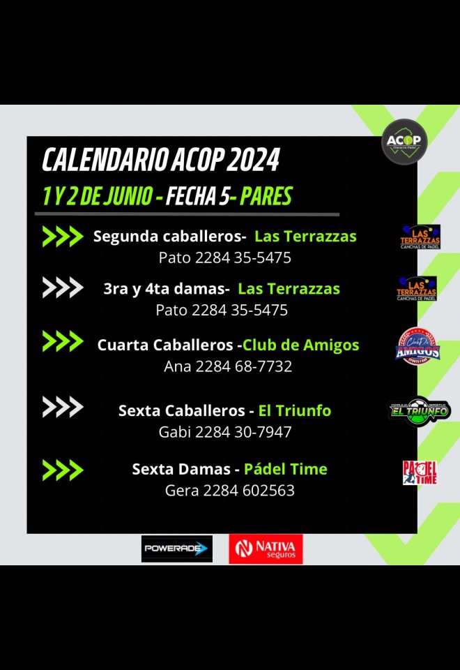 »» Evento: ACOP 5TA FECHA PARES »» Localidad: Olavarría »» Fechas: 31/05/2024 al 02/06/2024