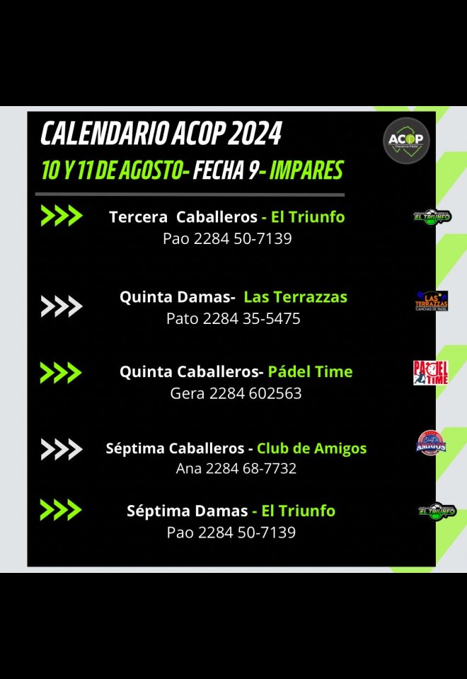 »» Evento: ACOP 9NA FECHA IMPARES »» Localidad: Olavarría »» Fechas: 09/08/2024 al 11/08/2024