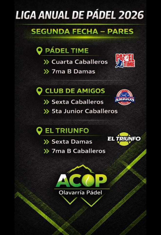 »» Evento: LIGA ACOP 2026 FECHA 2 PARES »» Localidad: Olavarría »» Fechas: 13/03/2026 al 15/03/2026